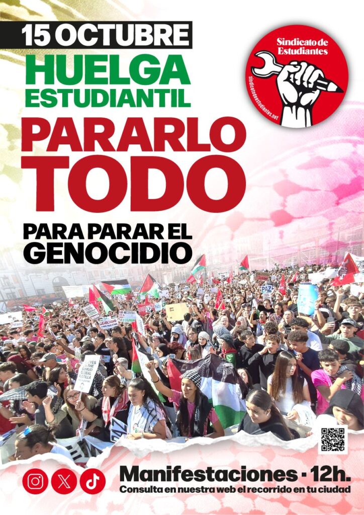 Hoy miércoles 15 de octubre, varios sindicatos españoles han convocado o secundado movilizaciones laborales en solidaridad con el pueblo palestino, exigiendo un alto el fuego definitivo, el fin del genocidio en Gaza, la ruptura de relaciones con Israel y una redistribución del gasto público. Aunque no es una huelga unificada, sino una combinación de paros y huelgas totales, de conjunto configura una jornada estatal de lucha por la Paz en Palestina, y una valiosa contribución de los trabajadores de nuestro país a consolidar el frágil alto el fuego en la Franja.