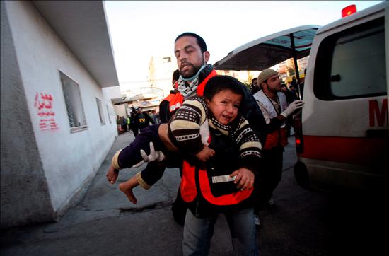 Escenas como esta se reiten desde hace dos días en Gaza, durante las tres exiguas horas de alto el fuego diario (de 13:00 a 16:00 en la hora local) que el ejército israelí ha dejado como “corredor humanitario” para la población civil. Cada habitante siente entonces como los minutos se le echan encima. Del terror por los disparos y las explosiones, Gaza pasa entonces a sacar frenética cadáveres entre los escombros, a trasladar heridos a los colapsados hospitales, a buscar familiares con un nudo en la garganta, y sobretodo a encontrar desesperadamente comida y abrigo. La ciudad se transforma en un hormiguero herido, que vibra de miedo, indignación y angustia.Durante esas tres horas de ultimátum, las familias desarrapadas se abalanzan sobre periodistas o cooperantes internacionales para implorar por comida, ropa o mantas para combatir el invierno de Gaza. El frío se siente más que nunca por la falta de electricidad y gas para alimentar radiadores. Pocas ventanas quedan con los cristales intactos después de 13 días de bombardeos. La situación se agrava en el caso de los refugiados, que han dejado sus casas a la carrera, apenas con lo puesto. "No trajimos nada de nuestras casas y mis hijos no pueden dormir en el suelo de noche porque está muy frío", relata Jaled junto a sus cuatro pequeños en el interior de una escuela. Su hermana Suhaib tuvo que romper su abrigo para usar los jirones como pañales para su niña de cuatro meses.Después de un año de bloqueo y de dos semanas de bombardeos israelíes, la comida es algo realmente difícil de conseguir en una ciudad de casi medio millón de hambrientos."Tengo miedo y además no voy a poder comprar el pan porque la cola es larga y estoy seguro de que la panadería no puede responder a la demanda de todo el mundo", lamenta Ahmad Daher, ansioso por dar de comer a sus seis hijos.La tregua de tres horas, anunciada por la diplomacia israelí como un gesto humanitario de Tel Aviv, le parece una burla sangrienta a John Ging, responsable en Gaza del programa de auxilio a los refugiados palestinos (UNRWA). "No hay que dejarse distraer por esa bonita palabra de ‘corredor’ y las bellas imágenes de convoyes. Las cosas no funcionan así. Los soldados israelíes detienen sus operaciones durante tres horas. Eso es todo. Nada más", denunció indignado en una entrevista al diario "Le Monde".La misión de la ONU en Gaza anunció la suspensión de sus operaciones, tras la muerte hoy por fuego israelí de un conductor de uno de sus convoyes en la franja. "No podemos continuar operando de esta manera. Pedimos que se nos garantice la seguridad para llevar a cabo nuestras operaciones, que se respete el derecho humanitario y la Convención de Ginebra y se deje operar a los actores humanitarios", dijo hoy otro portavoz de la UNRWA.Los camiones, claramente marcados con la bandera de las Naciones Unidas y de cuyo recorrido se había informado al ejército israelí, recibieron el impacto de artillería de un tanque. Un conductor murió, varios resultaron heridos y la preciosa carga humanitaria quedó dañada. Con éste van tres ataques a la ONU, desde que el pasado 6 de enero la artillería hebrea bombardeara dos escuelas de las Naciones Unidas donde se resguardaban varios cientos de refugiados. En el más grave de ellos, un solo proyectil segó la vida de 46 civiles, la mayoría mujeres y niñosLos cruentos ataques israelíes y el hallazgo de cadáveres palestinos entre los escombros han vuelto a engordar también hoy el balance de víctimas de la ofensiva, que alcanza ya la cifra de 779 muertos y 3.200 heridos. Las siniestras estadísticas podrían aumentar en las próximas horas, ya que 375 heridos se encuentran en estado crítico y el Ejército israelí continúa sembrando de muerte la maltrecha franja.“Yaser miró, ansioso y extenuado, el reloj. Las 15:48. Sólo quedaban 12 minutos para que la calle se volviera un sorteo de metralla. Se metió con su equipo en la ambulancia y mientras se alejaban a toda prisa, miró por el retrovisor las ruinas de lo que antes había sido el hogar de una familia. Habían encontrado 35 cuerpos. Apretó los dientes y el acelerador.”