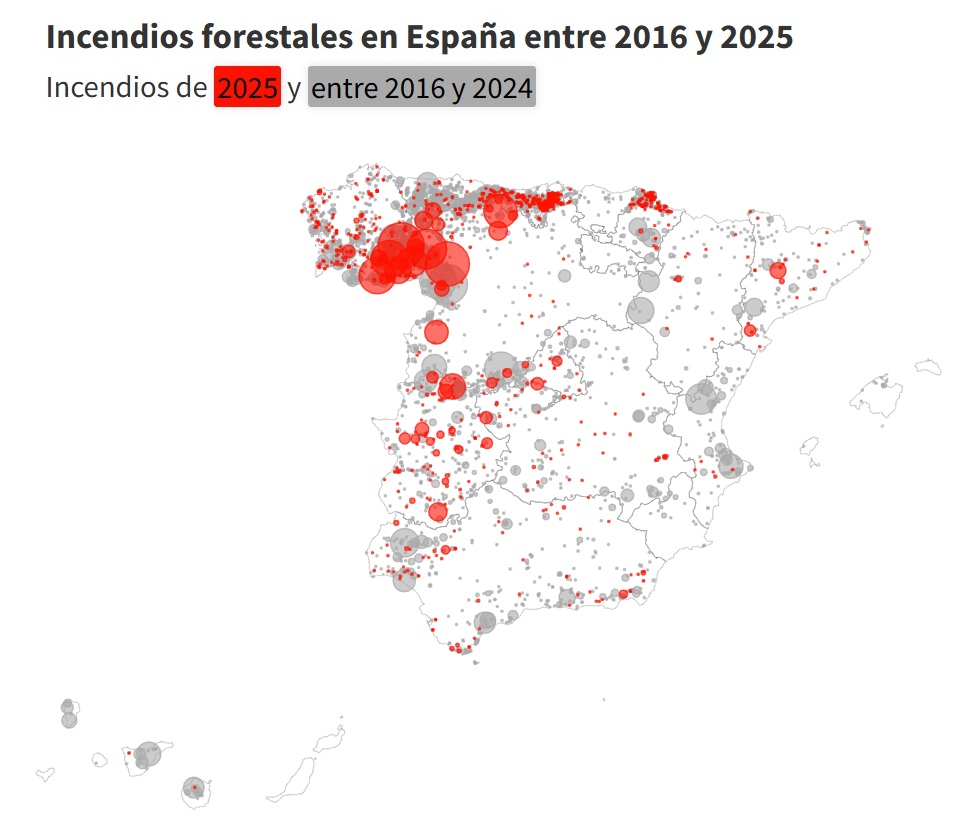 Nadie discute que los montes no están gestionados. Y solo unos pocos interesados se empeñan, contra las evidencias, en negar el fenómeno del cambio climático y la subida de temperaturas. Este junio fue el más caluroso desde que hay registros. Según datos de AEMET, en 2025 la temperatura media ha superado la media histórica casi todo el año, especialmente en verano.