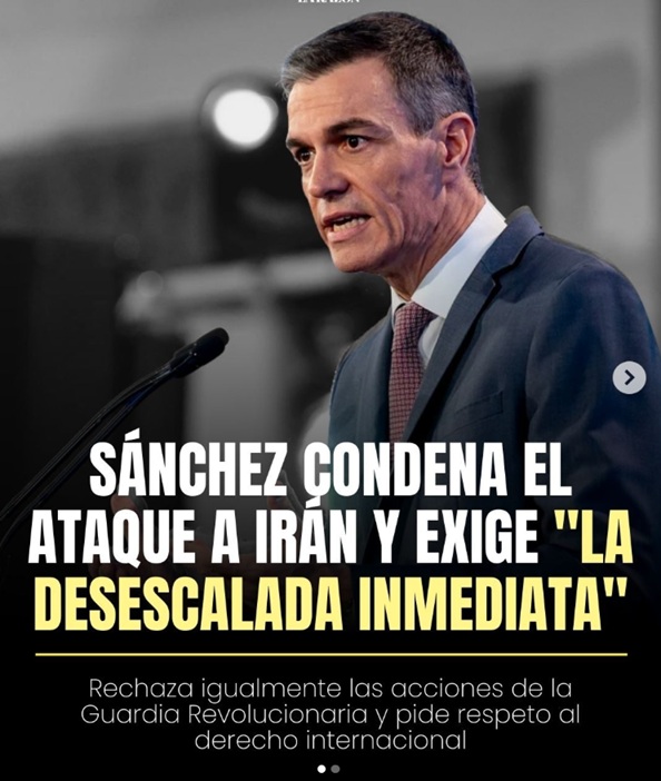 Pedro Sänchez ha condenado el ataque de EEUU e Israel contra Irán, afirmando que contribuye a “un orden internacional más incierto y hostil”. Reclamando “respeto por el derecho internacional”, y afirmando que “es hora de retomar el diálogo y alcanzar una solución política duradera para la región”. Puntualizando que “Hoy es imprescindible recordar que se puede estar contra un régimen odioso y estar a la vez en contra de una acción militar injustificada. Que se debe estar contra una guerra sin autorización del consejo de la ONU y del Congreso de Estados Unidos”.