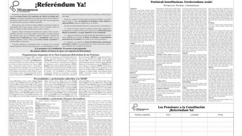 Desde que se hizo público el informe de expertos no gubernamentales sobre la sostenibilidad del sistema público de pensiones, partidos, sindicatos, colectivos sociales y personas a título individual han comenzado a movilizarse para que no se cruce la línea roja de protección que se estableció con el Pacto de Toledo sobre estas prestaciones. Mensajes del […]