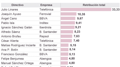 15 directivos del Ibex cobraron 127,2 millones de euros en 2012