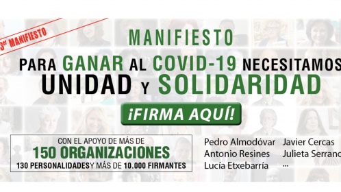 Hoy lunes 27 de abril se publica por CUARTA vez el manifiesto “Para ganar al COVID-19 necesitamos UNIDAD y SOLIDARIDAD” firmado ya por 160 personalidades, 250 organizaciones y más de 10.000 personas. Mientras crece la crispación en el Congreso, cada vez son más los sectores que se suman al manifiesto que reclama unidad entorno a…