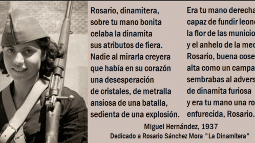 Rosario Sánchez Mora, la Rosario Dinamitera del poema de Miguel Hernández, fue una extraordinaria mujer que encarna por sí misma, una de las más vibrantes, hermosas y soberbias páginas vivas de la reciente historia de España. Rosario Dinamitera es un ejemplo de la pasión, vitalidad, y entrega con la que la retrató Miguel Hernández.