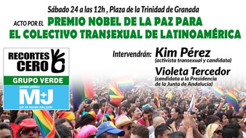 La activista Kim Pérez, la activista trans, recientemente galardonada por el ayuntamiento de Granda, ha presentado hoy la propuesta del Premio Nobel de la Paz para las trans de América Latina. Kim Pérez es candidata por Granada en la lista de la coalición Recortes Cero – Por Un Mundo Más Justo – Grupo Verde, que…