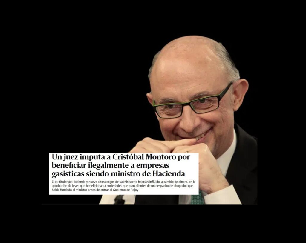 Corruptos y corruptores, siempre el mismo esquema. Una investigación judicial de 7 años revela cómo grandes empresas monopolistas -gasísticas y eléctricas- pagaron al despacho de abogados de Cristóbal Montoro (Equipo Económico) para que elaborara leyes a medida o influyera en las decisiones del gobierno de Rajoy. El exministro, junto a decenas de altos cargos del ministerio de Hacienda, ha sido imputado por cohecho, tráfico de influencias, prevaricación, fraude contra la administración y otros delitos de corrupción.