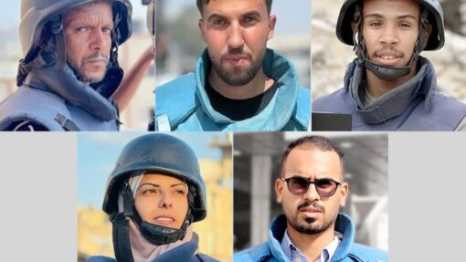 En esta ocasión Israel, mediante la táctica del «doble ataque», a acabado con la vida de cinco periodistas más. El camarógrafo Hussam al-Masri, de Reuters, que operaba una transmisión en vivo desde el hospital Al Nasser en Khan Younis, murió en el primer bombardeo. El segundo ataque -además de a varios rescatistas- asesinó a cuatro periodistas más: Mohamed Salama (Al Jazeera), Mariam Abu Daqqa (freelance que trabajaba para la agencia AP), Moaz Abu Taha y Ahmad Abu Aziz (trabajaba para la red Quds y también para el medio online Middle East Eye).