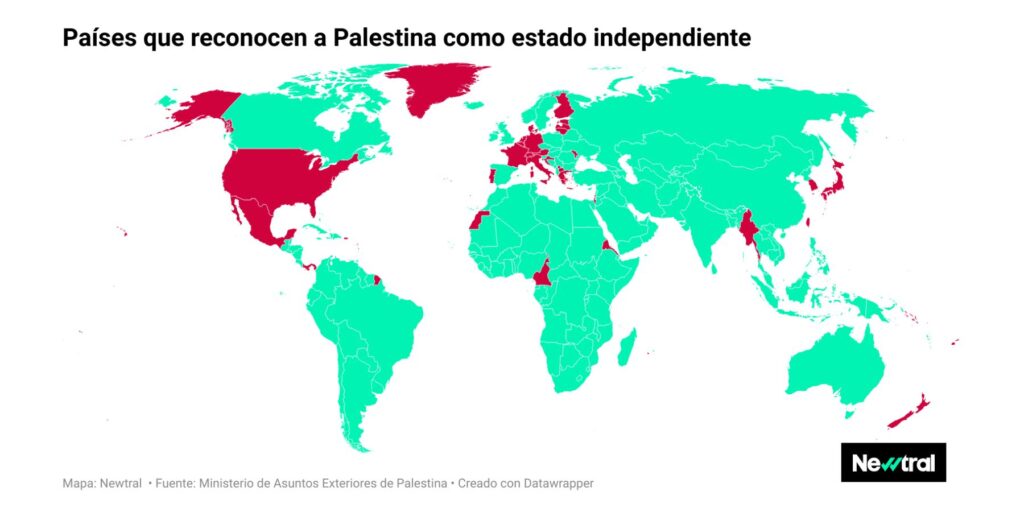 A día de hoy, 151 países del mundo han reconocido al Estado palestino. Esto representa más del 78% de los 193 Estados miembros de la ONU. Estos reconocimientos se han acumulado a lo largo de los años, pero han dieron un impulso significativo en 2024, cuando se sumaron Noruega, Irlanda y España.