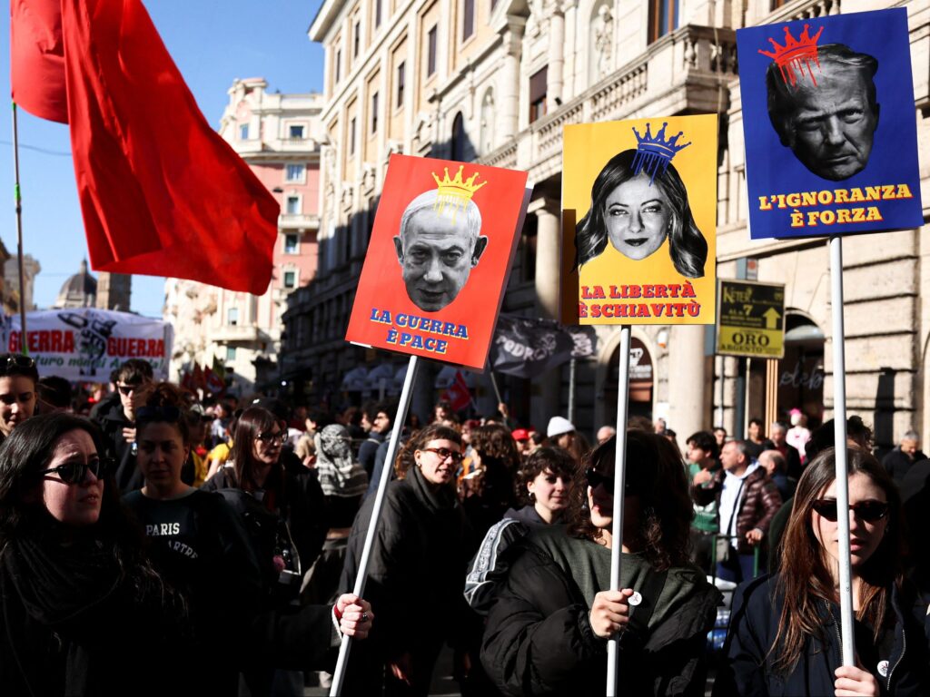Tras una fuerte oleada, en el otoño pasado, de huelgas generales y protestas contra el genocidio en Gaza y las políticas de rearme y recortes sociales del gobierno italiano, las calles de Roma se volvieron a llenar el pasado 16 de marzo con más de 300.000 manifestantes que clamaron contra las guerras de EEUU e Israel en Oriente Medio, así como el apoyo de la ultraderechista presidenta italiana, Giorgia Meloni, a Trump y su fracasado intento -perdió el referéndum- de reformas constitucionales para un mayor control de la Justicia.