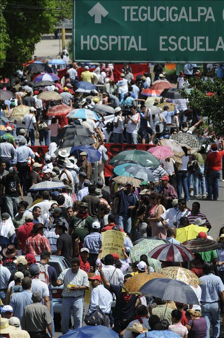 El pueblo de Honduras continúa este jueves en pie de lucha en las calles de Tegucigalpa exigiendo el retorno del presidente constitucional, Manuel Zelaya, a pesar de la suspensión de las garantías constitucionales y de las medidas represivas en todo el país centroamericano por el gobierno de facto que promovió el golpe de Estado del pasado domingo, presidido por Roberto Micheletti o como la sabiduría popular le apoda «Goriletti».