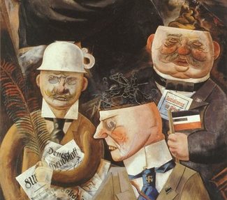 El Museo Thyssen organiza en Madrid una exosición sobre la sombra en el arte y algunas de las sombras más sobrecogedoras que pueden verse en ella se proyectaron en los cuadros, en las pantallas de cine, en las calles de aquella Alemania que rugía con los sonidos de la modernidad, y que tan bien retrató Ruttmann en su filme “Berlín, Sinfonía de una gran ciudad”, precursor del documental urbano tal y como hoy lo conocemos. Pero ninguna de estas sombras fue tan maléfica como las que empezaron a desfilar a la luz de las antorchas la noche del 30 de enero de 1933, que fue la última de aquella pobre República asediada y convulsa, que se vio silenciada por el fascismo.Antes de eso, la República de Weimar resurgía de las cenizas a las que habías sido reducida después de la Primera Guerra Mundial, y como suele ser habitual, esa ave fénix tomaba forma en las inquietas mentes de los creadores más rompedores y comprometidos. A la conocida explosión cinematográfica alemana, verdadera meca del celuloide previa a Hollywood, le acompañó un movimiento de vanguardia artística denominado la Nueva Objetividad, enterrado insistentemente por los nazis, y que todavía hoy parece clamar desde debajo de las piedras.De entre estos artistas, cuya corriente también fue denominada “expresionismo figurativo”, destaca sin duda George Grosz. Heredero de Goya en muchas de sus visiones de la guerra y precursor del género caricaturístico. Durante la década de los años veinte su estilo artístico expresa su disgusto con la Alemania de la posguerra. La moderna metrópoli se convirtió en el tema recurrente de su obra y, como un Bosco contemporáneo de incisivo tono crítico y agudo sentido de la observación, plasmó su entorno en sus obras con una intención moralizante. Fue quizá el artista que mejor supo hacer una crónica fidedigna del Berlín de los años veinte. Hoy en día, una de las principales imágenes que tenemos de la Alemania de la República de Weimar es la que nos ha dejado Grosz con sus mordaces caricaturas y su captación magistral de la vida de las calles berlinesas.