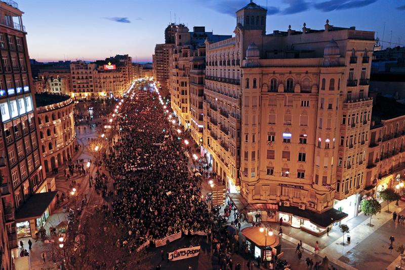 En Madrid, concretamente, este cronista consultaba a las 19.30 con un agente municipal a las puertas del Hotel Ritz, orilla de la Plaza de Neptuno. Neptuno, a pocos metros del más que blindado Congreso de los Diputados, era el destino final de la manifestación. Aunque miles de personas, a esa hora, no habían podido acercarse ni a dos quilómetros de la plaza a causa de la enorme afluencia de ciudadanos.