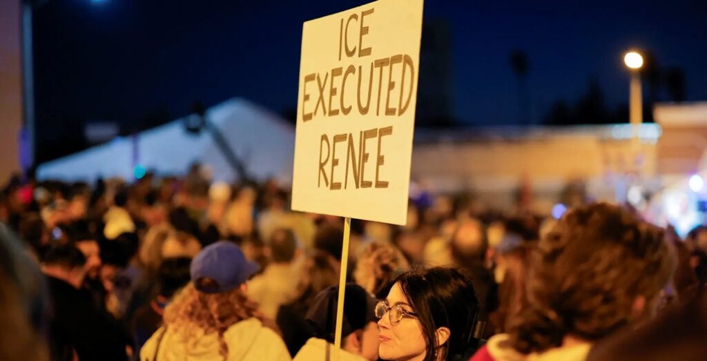Al conocerse rápidamente las imágenes de la ejecución de Renee Good, la indignación se extendió rápidamente a nivel nacional, con vigilias, manifestaciones y protestas masivas anti-ICE en varias ciudades: Nueva York, Los Ángeles, Chicago, Nueva Orleans, San Francisco, Washington DC, Phoenix, Portland, Miami…