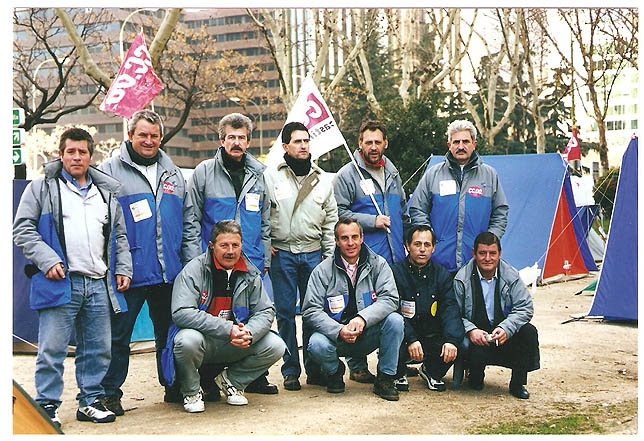 29 de enero de 2001.- Mil quinientos trabajadores de SINTEL llegados de 14 comunidades autónomas acampan en el Paseo de la castellana de Madrid frente al Ministerio de Economía. Piden la intervención del Gobierno y denuncian que Telefónica les debe en ese momento 6 nóminas.