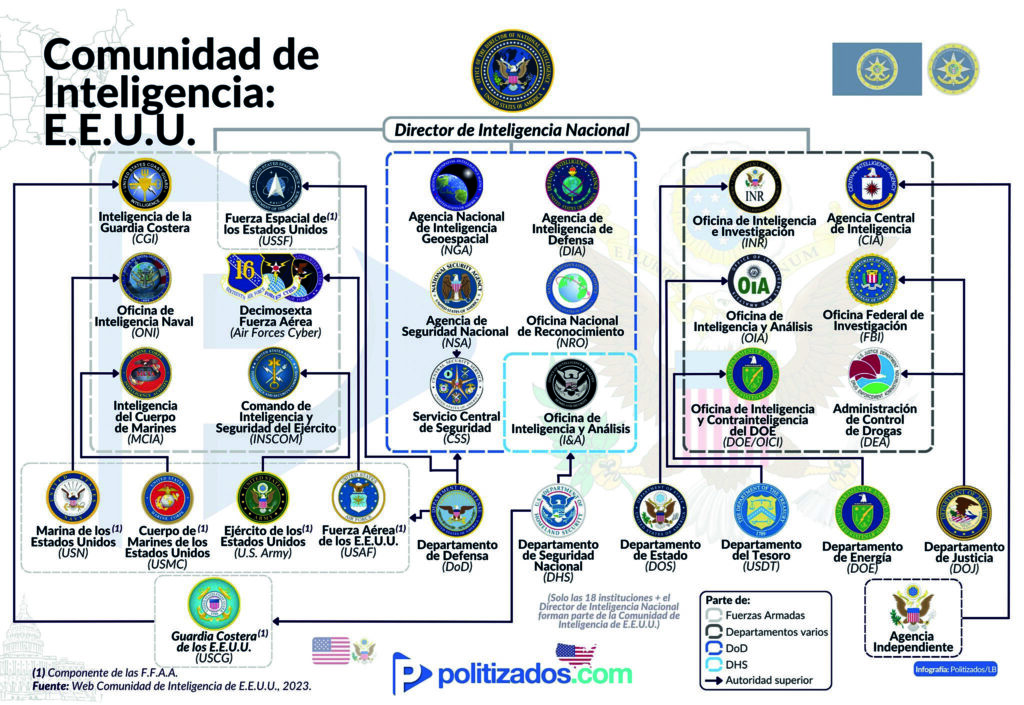 - Además de que cuenta con un poderosísimo aparato de intervención, espionaje y “operaciones encubiertas” -una «Comunidad de Inteligencia» de 16 agencias-, sólo EEUU tiene la capacidad de vincular orgánicamente -desde dentro- los aparatos fundamentales de los Estados de otros países, creando «élites políticas dependientes» para intervenir y reconducir el rumbo de los países bajo su órbita de influencia.