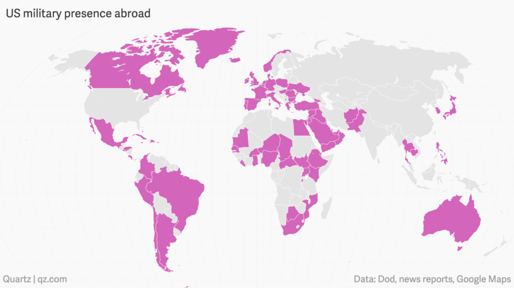 Ningún otro país del mundo cuenta con 200.000 efectivos y siete flotas desplegadas fuera de sus fronteras, en más de 800 bases militares en 80 países. En comparación, los 27 países de la UE cuentan con 25.000 efectivos y 40 bases.