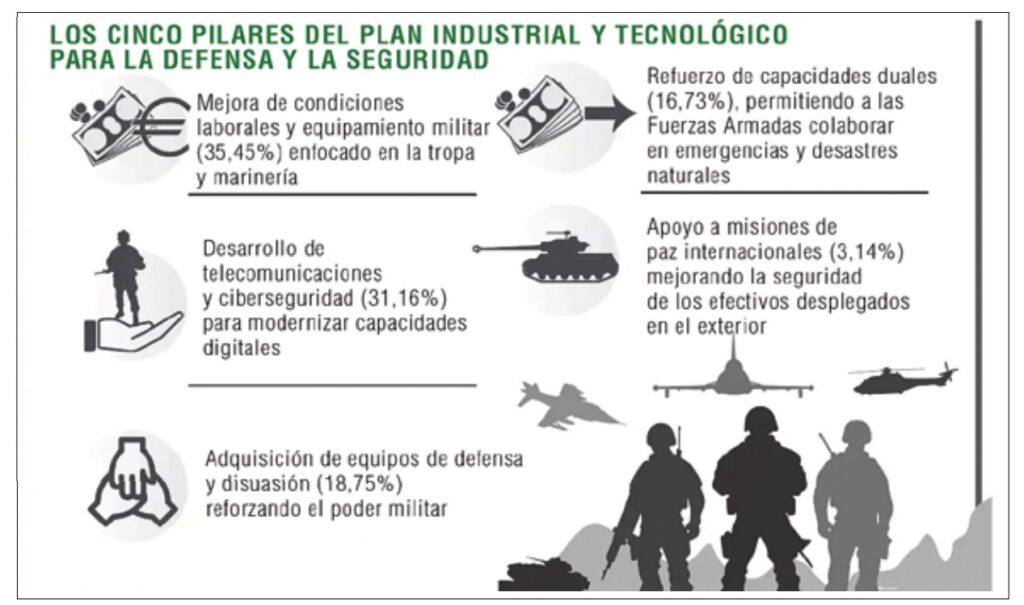 Nos lo presentan como “Plan Industrial y Tecnológico para la Seguridad y la Defensa de España y Europa”, colocando la industria y la tecnología por delante para que parezca que es un plan de inversión en “industrialización y modernización de nuestro tejido productivo” y no un plan de rearme. Por eso se habla mucho de “innovación tecnológica, ciberseguridad, telecomunicaciones o tecnologías de doble uso”, pero apenas se habla de los sistemas de armas, de bombas y misiles, aviones o buques de guerra…