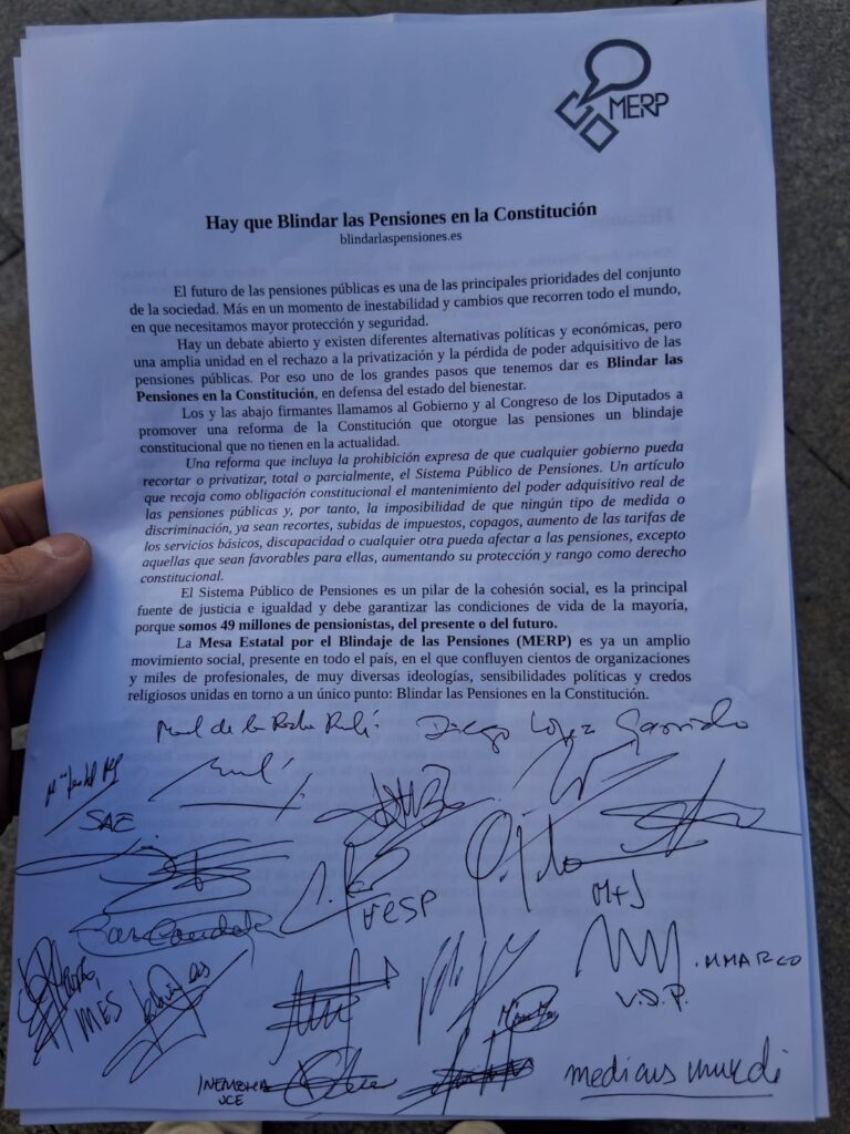 El manifiesto (que se puede leer en Infolibre o en la web blindarlaspensiones.es) exige una reforma de la Constitución que prohíba la privatización de las pensiones y la pérdida de poder adquisitivo, elevando la protección constitucional las pensiones al rango de un derecho fundamental.