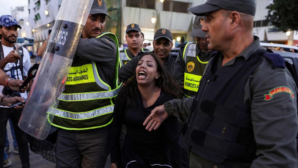 Claman contra la gigantesca desigualdad social, contra unas condiciones de vida y de trabajo cada vez más depauperadas, contra unos servicios públicos destartalados, contra la corrupción sistémica de la policía y las autoridades, y contra la represión y la falta de libertades. Y a sus propias reivindicaciones, no pocos suman la denuncia del genocidio en Gaza y de la complicidad del gobierno Marruecos y del Majzén -la Casa Real alauí y sus aparatos- con el Estado de Israel.