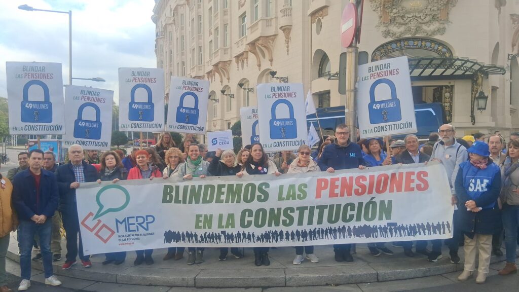 La Mesa Estatal por el Blindaje de las Pensiones (MERP), formada por 537 organizaciones en todo el país, salió a la calle ayer martes 11 de noviembre en más de 100 poblaciones de toda España para exigir ‘un candado para las pensiones como mejor forma de defender el Estado del Bienestar’.