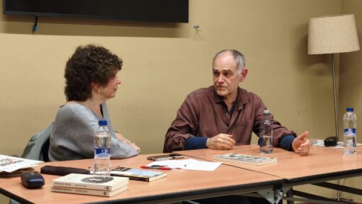 Nos planteamos el acto como una conversación que empezamos entre Javier y el público, cogiendo como recorrido algunos de sus libros.
