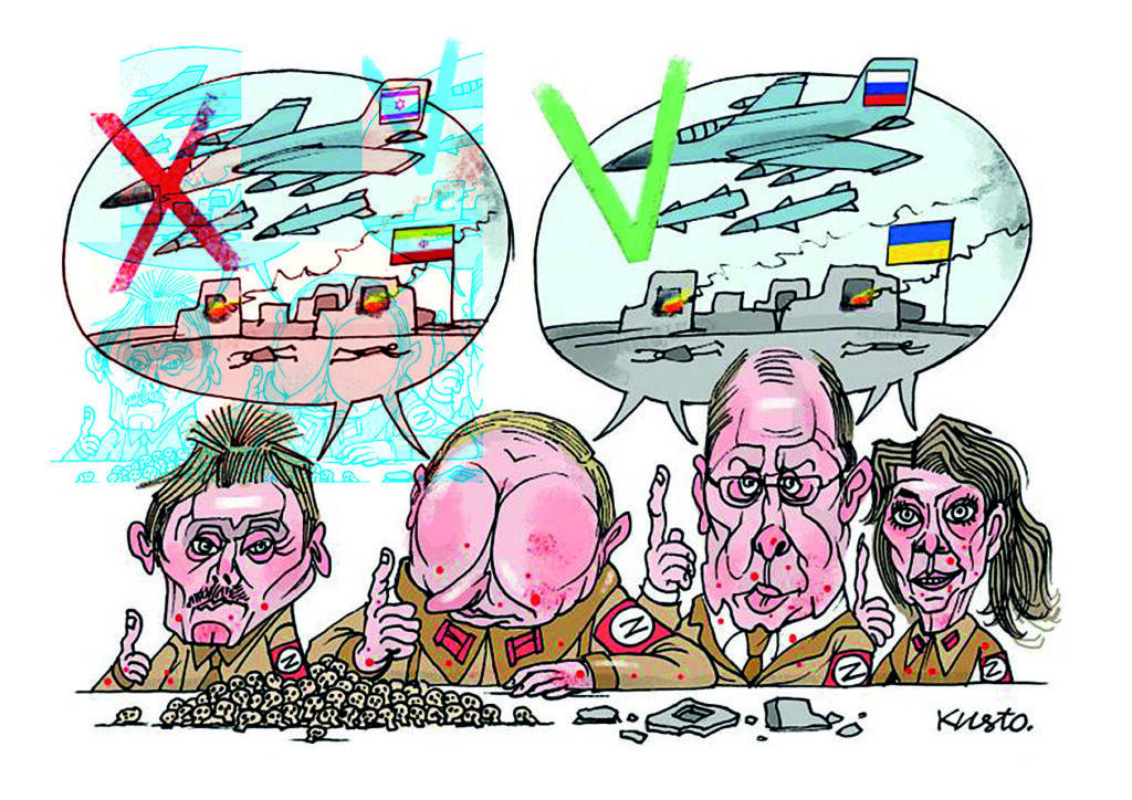 A renglón seguido, en el mismo acto y haciendo una increíble pirueta de cinismo, Putin dijo estar «muy preocupado» por el posible estallido de una tercera guerra mundial debido «a la situación en torno a Ucrania» (Putin ha prohibido que se use la palabra «guerra» para referirse a su «operación militar especial») y «a las instalaciones nucleares de Irán, que son atacadas por la Fuerza Aérea de Israel» [el ataque norteamericano se produciría dos días después]