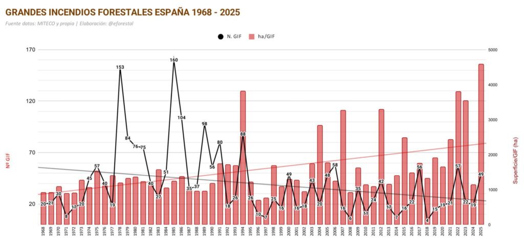 Una cosa es la gestión forestal por parte de la administración y otra cosa es lo que hace la sociedad y como está utiliza la naturaleza. Un dato bastante relevante es que cerca de un 80% de la superficie forestal es de titularidad privada. La gestión de esa parte privada lo tienen que hacer los propietarios, la administración no puede hacer una administración preventiva, ni mucho menos, de esa parte privada. Es como sí tu tienes tu casa en propiedad y estas esperando a que la administración te venga a limpiar la casa, la casa la tienes que limpiar tú, con el monte igual. No me gusta usar el termino “limpiar” porque el monte no se limpia, el monte se gestiona, se puede desbrozar, aprovechar para ganado, roturar….