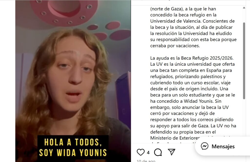 Bajo las ruinas de Gaza, una joven estudiante palestina mantiene viva la esperanza de seguir formándose. Tras haber sido la única seleccionada de su país para una beca en Italia, la guerra cambió la vida de Widad por completo. Su casa fue destruida y ahora espera poder viajar a Valencia gracias a una nueva oportunidad académica que representa, para ella, un símbolo de resistencia y futuro.