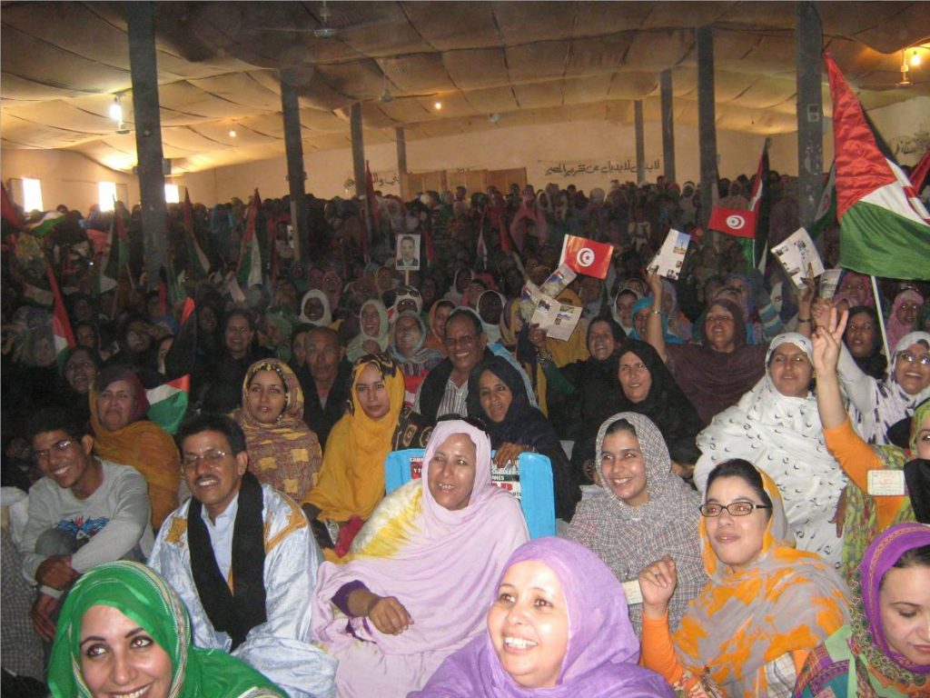 A esta Conferencia asistimos alrededor de 150 delegaciones de mujeres de diferentes países, representando tanto a instituciones- como es el caso de parlamentarias de países africanos – así como a partidos políticos, sindicatos y ONGS de diversos ámbitos.«Hay que seguir peleando por los Derechos Humanos sistemáticamente violados por las fuerzas de ocupación marroquíes» Estuvieron presentes, todos los continentes y muchos países: Argelia, Mauritania, Sudáfrica, Angola, Namibia, Nigeria, Níger, Benín, Cabo Verde, Camerún, la República Democrática del Congo, Túnez, Egipto, Líbano, los Emiratos Árabes Unidos, Sudán, Argentina, Perú, Chile, Colombia, Brasil, Cuba, México, Venezuela, EE.UU., el Estado español y el francés, Italia, Portugal, Gran Bretaña, Suiza, Países Bajos… así como representantes de la Unión Africana, de la Federación Democrática Internacional para las Mujeres, Mujeres de la Internacional Socialista, la Organización para el Empoderamiento Político y Económico para la Mujer en África, la Red de Apoyo de las Mujeres en África, el Movimiento de las Madres de Plaza de Mayo –línea fundacional–, la Organización de las Madres de Latinoamérica, así como la delegación que representaba a las mujeres Saharauis de los Territorios del Sahara Occidental, ocupados por Marruecos.Esta importante presencia, no es sino el resultado del ímprobo trabajo que viene realizando la UNMS en foros internacionales y de los innumerables viajes que realiza Fatma el Mehdi, su Secretaria General, a lo largo y ancho del mundo. El Estado español contó con una fuerte representación de ONGs de distintas CC.AA.La UNMS, motor del cambioLa Conferencia puede calificarse como un éxito – tanto por sus contenidos y metodología como, sobre todo, por los resultados. Ha servido para que, entre otras metas que nos habíamos fijado, tejer con hilos duraderos esa red que las mujeres somos capaces de forjar cuando nos unimos en un mismo objetivo. También para comprometernos a realizar un trabajo conjunto que sirva, tanto para apoyar y empujar la justa causa del pueblo saharaui en el logro del ejercicio del derecho de autodeterminación que se le viene negando, como para mostrar nuestro apoyo incondicional a la UNMS, indudable motor de cambio dentro de la sociedad saharaui. «La Conferencia se comprometió a apoyar la justa causa del pueblo saharaui por el derecho de autodeterminación» La Conferencia se ha realizado en dos etapas. La primera nos llevó a los Campamentos de Refugiadas y Refugiados Saharauis en Tindouf. Allí tuvimos ocasión de compartir dos días con las personas que resisten en un día a día cada vez más duro, por la falta de recursos y por el tiempo inclemente que caracteriza a la hamada argelina, ese desierto pedregoso donde se pasa del frío más extremo al calor más asfixiante en un mismo día. El calor, en cualquier caso, es lo que mejor hemos soportado, sobre todo el calor humano que es capaz de transmitir el pueblo saharaui en estado puro.El recibimiento que se nos dispensó en Smara – donde toda la población se echó literalmente a la arena para darnos la bienvenida – es de los que difícilmente podremos olvidar las personas que lo vivimos.Smara también sirvió para celebrar el hermanamiento entre dos Organizaciones de Mujeres que tienen en común el padecimiento mayor que puede sufrirse, la desaparición de sus hijos e hijas en las fauces del fascismo. Madres de Plaza de Mayo, línea fundacional, con la presencia de la inconmensurable Nora Irma Cortiñas, se unió en un abrazo con las hermanas saharauis, a través de otra madre, Mailemnin Sueyah, en representación de las madres de las y los desaparecidos y presos saharauis. Esta parte de la Conferencia también nos llevó a compartir un largo rato con el Presidente del Gobierno de la RASD, al que pudimos escuchar sus reflexiones en este momento tan especial que se está viviendo en el que allí, pensábamos todavía que hasta era posible que el Consejo de Seguridad de la ONU, de una vez por todas, se ocupara, cuando menos, de velar por los DD.HH. de la población saharaui en los Territorios del Sahara Occidental ocupado por el Estado marroquí (TT.OO.) y preservarlo de las sistemáticas violaciones que las fuerzas de ocupación realizan todos los días… pero, no ha sido así, y habrá que seguir peleando por este objetivo.Romper los tres murosLa segunda etapa de la Conferencia prosiguió en Argel, donde se establecieron los diferentes retos a lograr como fruto de esta Conferencia. Éstos son romper, al menos, tres de los muros que imposibilitan que el pueblo saharaui viva como le corresponde. Romper el Muro de la Vergüenza. Para ello se ha creado la Plataforma Internacional contra este Muro, con la que se pretende recoger la adhesión de todo tipo de Instituciones y ONGs que trabajamos en distintos ámbitos.Romper el Muro del silencio. Llevar la voz y la reivindicación del derecho de autodeterminación y el respeto a los Derechos Humanos del pueblo saharaui a todas las instancias políticas, además de a la calle, para romper la invisibilidad que rodea a este pueblo. Por de pronto, la PAWO – Unión de Mujeres Africanas – lo va a hacer el 15 y 16 de mayo en la conmemoración del 50 aniversario de la UNION AFRICANA, en la que se reunirán con el resto de movimientos africanos. A su vez, organizaciones de mujeres del Magreb – sobre todo las argelinas y tunecinas – van a llevar este tema a la próxima sesión de la LIGA ARABE, que se reúne en fecha próxima, en los meses de mayo o junio. Romper el Muro de las cárceles en las que están presos políticos saharauis, también tuvo su espacio en esta Conferencia. Este objetivo, en el que estamos empeñadas todas las organizaciones que peleamos contra la injusticia. Se firmó la adhesión a un comunicado que, junto con todos los que se están recogiendo en otras instancias y por múltiples organizaciones, se hará entrega a lo