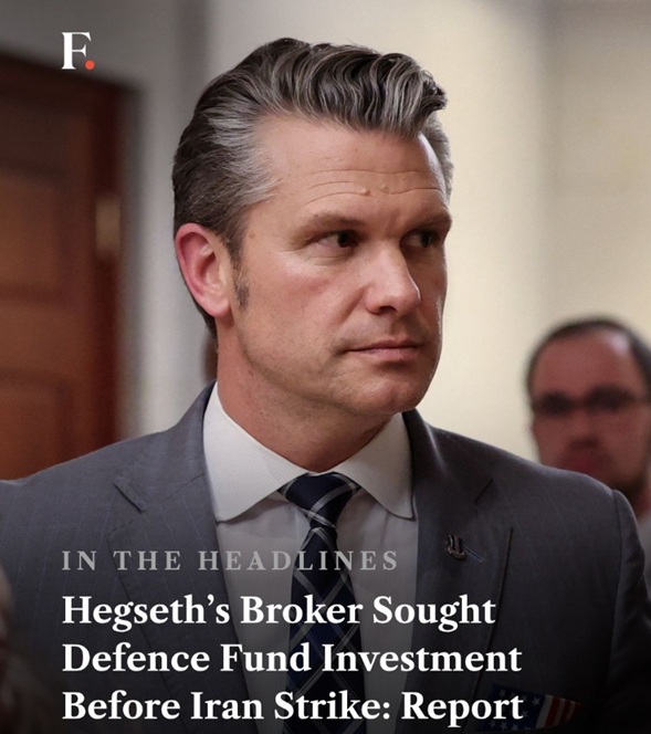 Otro medio de comunicación nada sospechoso de izquierdismo o de lanzar teorías conspiranoicas, el Financial Times, denunció hace pocas semanas que un ‘broker’ de bolsa vinculado al Secretario de Guerra, Pete Hegseth, se lanzó a realizar inversiones multimillonarias en fondos de la industria de defensa y armamento apenas días antes de que EEUU lanzara sus ataques masivos contra Irán.