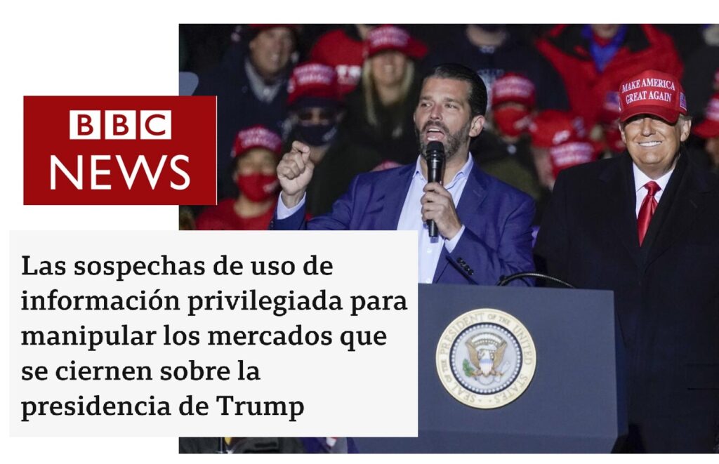 «Algunos analistas afirman que eso tiene todas las señales características del tráfico ilegal de información privilegiada, que algunos utilizan para apostar en el mercado basándose en información que no está disponible al público en general», dice la BBC.