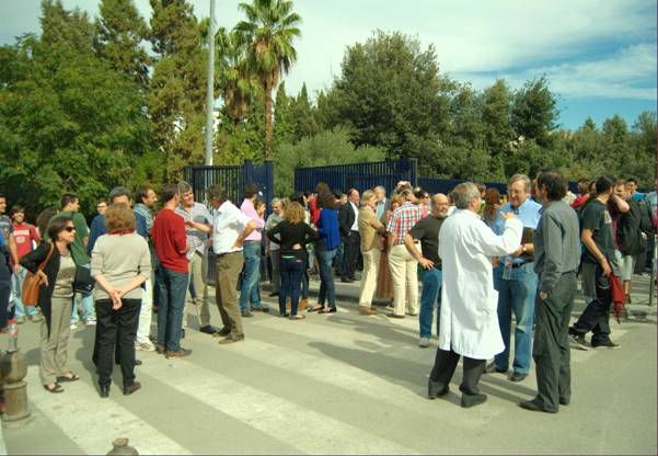 Respondiendo a la convocatoria del colectivo «Carta por la Ciencia», decenas de investigadores y estudiantes, además del rector, Francisco González Lodeiro, el vicerrector Luis Jiménez del Barco y el decano de la Facultad de Ciencias, Antonio Ríos Guadix, se concentraron el pasado 17 de octubre contra los recortes en Ciencia ante la Facultad de Ciencias de la UGR, y por «un acuerdo social y político para preservar la I+D+i de los vaivenes económicos y políticos».