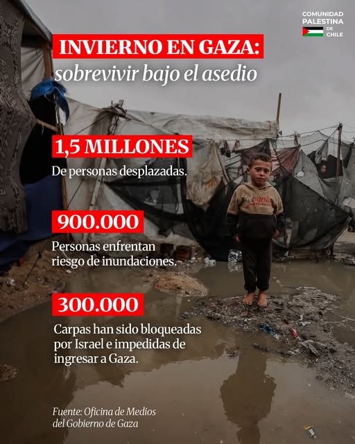La muerte y las calamidades llueven sobre mojado sobre la desdichada población civil gazatí, que sigue sufriendo una crisis humanitaria extrema. Un invierno devastador y unas lluvias torrenciales que, igual a los ataques israelíes, no dan tregua en Gaza, han destruido miles de tiendas de palestinos desplazados, dejando a muchas miles más empapadas de agua, con temperaturas bajísimas por la noche. Las críticas condiciones de falta de abrigo han matado al menos a 15 palestinos estos últimos días, ente ellos 3 niños, expuestos al frio, al hambre y sin apenas refugio. A la tragedia se suma la inundación en el Hospital Al-Shifa y el grave bloqueo de Tel Aviv a la ayuda.