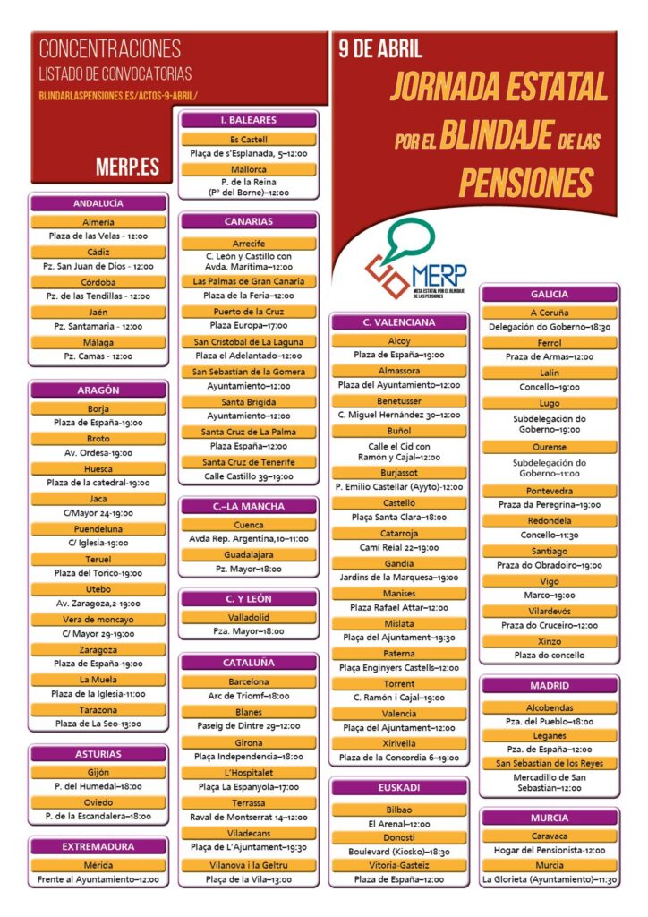 Simultáneamente, las organizaciones de la Mesa Estatal por el Blindaje de las Pensiones se han concentrado en más de 70 poblaciones.