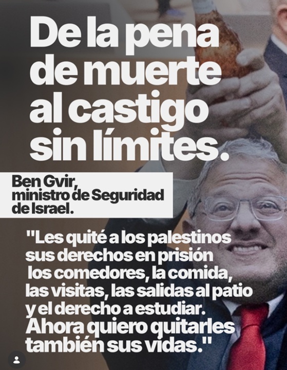 Una medida abiertamente fascista que fue festejada con champán por sus promotores, el ala más ultra del gobierno de Netanyahu, especialmente su ministro de Seguridad, Itamar Ben-Gvir.
