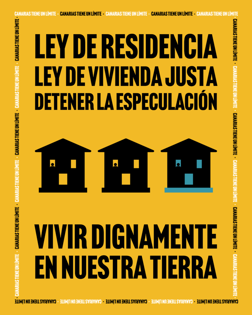 La primera medida es el paquete: moratoria turística y vacacional, limitación de compra a no residentes, y Ley de Residencia. Respetar el límite de carga de estas islas que ya hemos pasado con creces. No podemos seguir invitando a más turistas (temporada corta), ni a inversores a que desde una situación de privilegio (poder adquisitivo superior), sigan invirtiendo en el sector inmobiliario, aumentando el número de residentes foráneos, y desplazando a la población local. Nada que objetar, por supuesto, con la población del Sur Global que se ve obligada a desplazarse por cuestiones obvias.