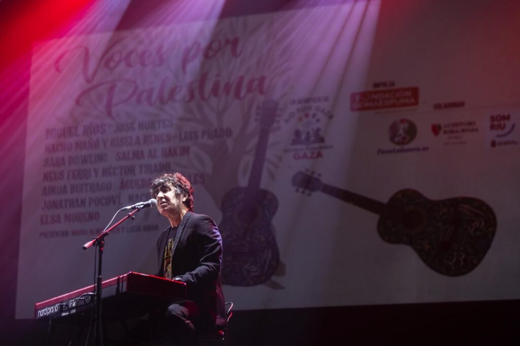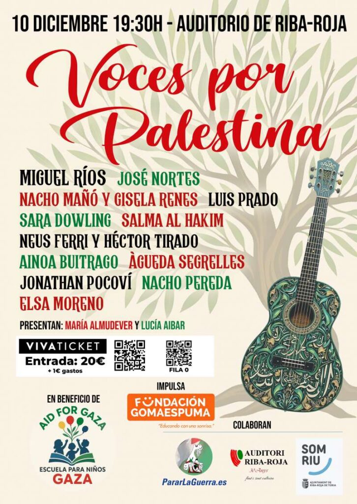 Junto al rockero granadíno, en el auditorio de Riba-roja actuaron artistas como Nacho Mañó y Gisela Renes, Neus Ferri, el pianista Luis Prado, los cantautores Jonathan Pocoví, Nacho Pereda, Ainoa Buitrago y Àgueda Segrelles, y las artistas palestinas Sara Dowling y Salma Al Hakim.