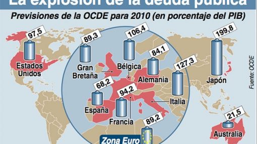 Según el gráfico adjunto, resulta que Esaña es, después de Australia, el país con menos deuda pública de los que forman la OCDE. Todos los demás, EEUU, Inglaterra, Francia, Italia, Japón e incluso la virtuosísima Alemania tienen una deuda pública mayor que la nuestra en relación al PIB. Y ello por no hablar en términos de volumen absoluto de deuda, donde el gran patrón norteamericano se lleva la palma y arrasa con todos los demás. Los poco más de 700 mil millones de dólares de deuda pública que España tendrá al finalizar este año resulta que desestabilizan la economía mundial. Pero los más de 13 billones (sí con b) de dólares de deuda pública que tendrá EEUU en 2010 son, al parecer, insignificantes. El mensaje es claro: su pequeña deuda es un gran problema para ustedes. Nuestra enorme deuda es un problema todavía mayor para ustedes. ¿O es que acaso se han olvidado de quién maneja el gran garrote? No tienen vergüenza Para justificar los ataques contra el 90% de la población y hacer comulgar a una parte de la sociedad con las ruedas de molino de los ajustes y recortes, gobiernos europeos, fuerzas políticas y medios de comunicación están empeñados en desplegar toda una batería de mentiras, medias verdades (que es la peor de las mentiras) e intoxicaciones cuyo objetivo es ocultar la verdad, confundir las mentes y fomentar la resignación y la culpabilidad entre las víctimas de sus ataques. A comienzos de año, cuando empezó a extenderse la tormenta desatada sobre Grecia, todo el problema de la economía española parecía estar centrado –de creer a la UE y a los grandes medios de comunicación anglosajones– en el volumen y el crecimiento de nuestra deuda pública, y la consiguiente desconfianza de los mercados financieros en si seríamos capaces de responder de ella. Unos meses después, y cuando las presiones de Obama y las exigencias de Merkel han logrado vencer las escasas resistencias a acometer un recorte sustancial en el gasto público, la lista de reclamaciones de las grandes potencias ha elevado el listón de sus exigencias. Ahora el problema ya no es sólo, ni siquiera principalmente la deuda pública, sino asuntos totalmente ajenos a ella como la reforma laboral, la privatización de las cajas de ahorro o la apertura al capital privado del sistema sanitario español, a pesar de que la Seguridad Social mantiene, tras dos años de crisis, un superávit más que multimillonario. Para proceder a este auténtico saqueo de los salarios, las rentas y la riqueza nacional, los grandes medios de comunicación monopolistas han desplegado un conjunto de mentiras, presentadas como auténticos axiomas (verdades que no necesitan demostración) que es necesario desenmascarar. Vivir por encima de las posibilidades. Sí, ¿pero quién? La primera gran mentira es afirmar que la sociedad española, en su conjunto, ha vivido todos estos años por encima de sus posibilidades. Y que por tanto ahora ha llegado el momento de “purgar” nuestros pecados y excesos con drásticos ajustes y recortes de todo tipo. Difundiendo esta idea se busca que parte de la sociedad se considere tan responsable como culpable de la crisis, ofreciéndose de esta forma mansamente al sacrificio que se les exige. Una vieja táctica de convertir a las víctimas en culpables, que tuvo su apogeo durante décadas en el País Vasco, donde la línea nazifascista del PNV se dedicaba a criminalizar a las víctimas del terrorismo etarra con el insidioso y despreciable latiguillo de “algo habrán hecho”. Ese “algo habrán hecho” los españoles, dicen, es vivir por encima de sus posibilidades. Pero, ¿quién ha vivido aquí por encima de sus posibilidades? Para comprenderlo, basta con echar unas pocas cuentas basadas en la fría objetividad de los números. El volumen total de la deuda externa española –tanto la privada como la parte de la pública que está en manos de no residentes– ascendía a finales de 2009 a alrededor de 1 billón 800 mil millones de euros. Pues bien, de esa deuda externa –que es la verdaderamente relevante–, 854 mil millones de euros, es decir, un 47,5% corresponde a las deudas contraídas por los bancos españoles con la banca extranjera. Prácticamente la mitad del endeudamiento exterior total de España (sea público o privado) es responsabilidad exclusiva de un pequeño grupo de no más de 40 bancos y cajas de ahorro. En el que además, sólo 10 de ellos (los 4 grandes y los seis medianos) concentran más del 90% de esa deuda. Excluyendo a los bancos, los otros 29 grandes monopolios que forman parte del IBEX-35 mantenían en ese mismo período, finales de 2009, una deuda con el capital extranjero de 240.000 millones de euros, lo que equivale a más de un 13% de la deuda externa española. En total, 10 bancos y 29 monopolios suman, ellos solos, más del 60% de toda la deuda externa acumulada por España en estos últimos 10 años. ¿Quién ha vivido por encima de sus posibilidades? Porque además, este ingente endeudamiento con el exterior no se ha destinado a dinamizar o hacer más eficiente, productivo y competitivo el tejido productivo nacional. Tampoco a invertir en tecnología o a crear nuevas fuentes de riqueza social. Mucho menos a mejorar las condiciones de vida de la mayoría de la población. Su destino principal ha sido que los dos grandes bancos, Santander y BBVA (pero sobre todo el primero), unos pocos monopolios (Iberdrola, Telefónica, Repsol,… y poco más) y un puñado de grandes constructoras (Ferrovial, Acciona, Sacyr, ACS,..) expandieran de tal modo su negocio por medio mundo y pudieran tutearse con el top ten de las finanzas y los mercados mundiales que hoy cuadriplican los beneficios de hace 10 años. Los “cuatro grandes” de la bolsa española (Santander, BBVA, Telefónica e Iberdrola) ganaron en 2009, como media, seis veces más que el año inmediatamente anterior a la entrada en el euro. ¿Hay algún trabajador, algún autó